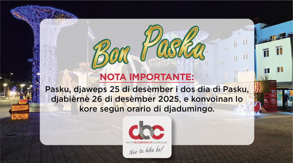 Klik AKI pa e orario di djadumingu. (Tuma nota: nos konvoinan lo kore 25 di desèmber (Dia di Pasku) i 26 di desèmber segun e orario di djadumingu aki!)